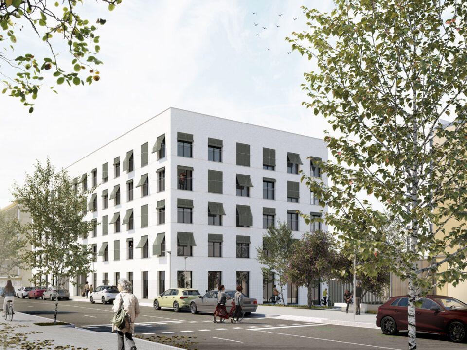 Construction start_ Industrialized social housing Block J in the Casernes of Sant Andreu, Barcelona.